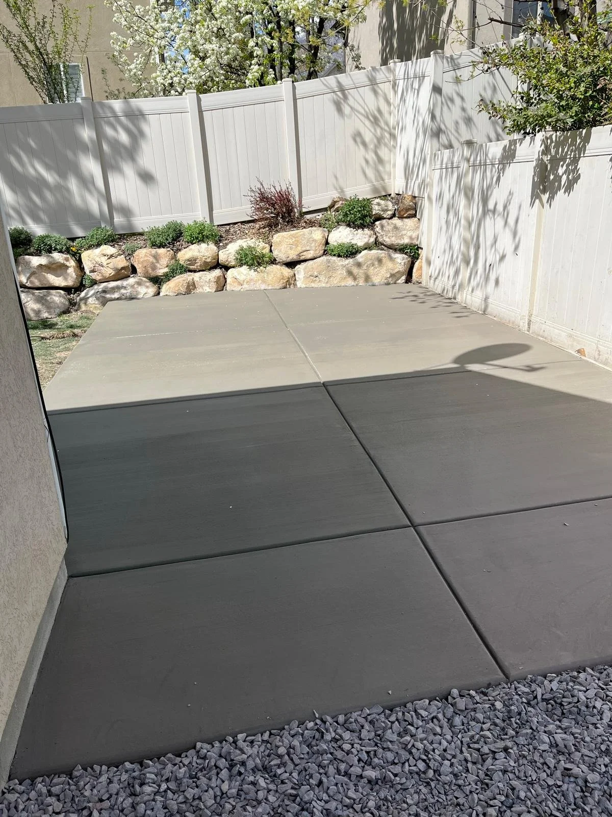 We work with you to design a concrete patio that complements your home’s aesthetic and meets your outdoor needs. Whether you prefer a classic look, a modern design, or something unique, we offer custom shapes, sizes, and layouts to fit your space.
